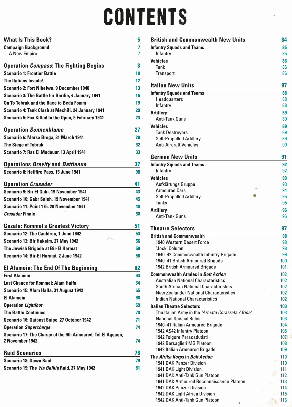 Bolt action "The Western Desert" Contents